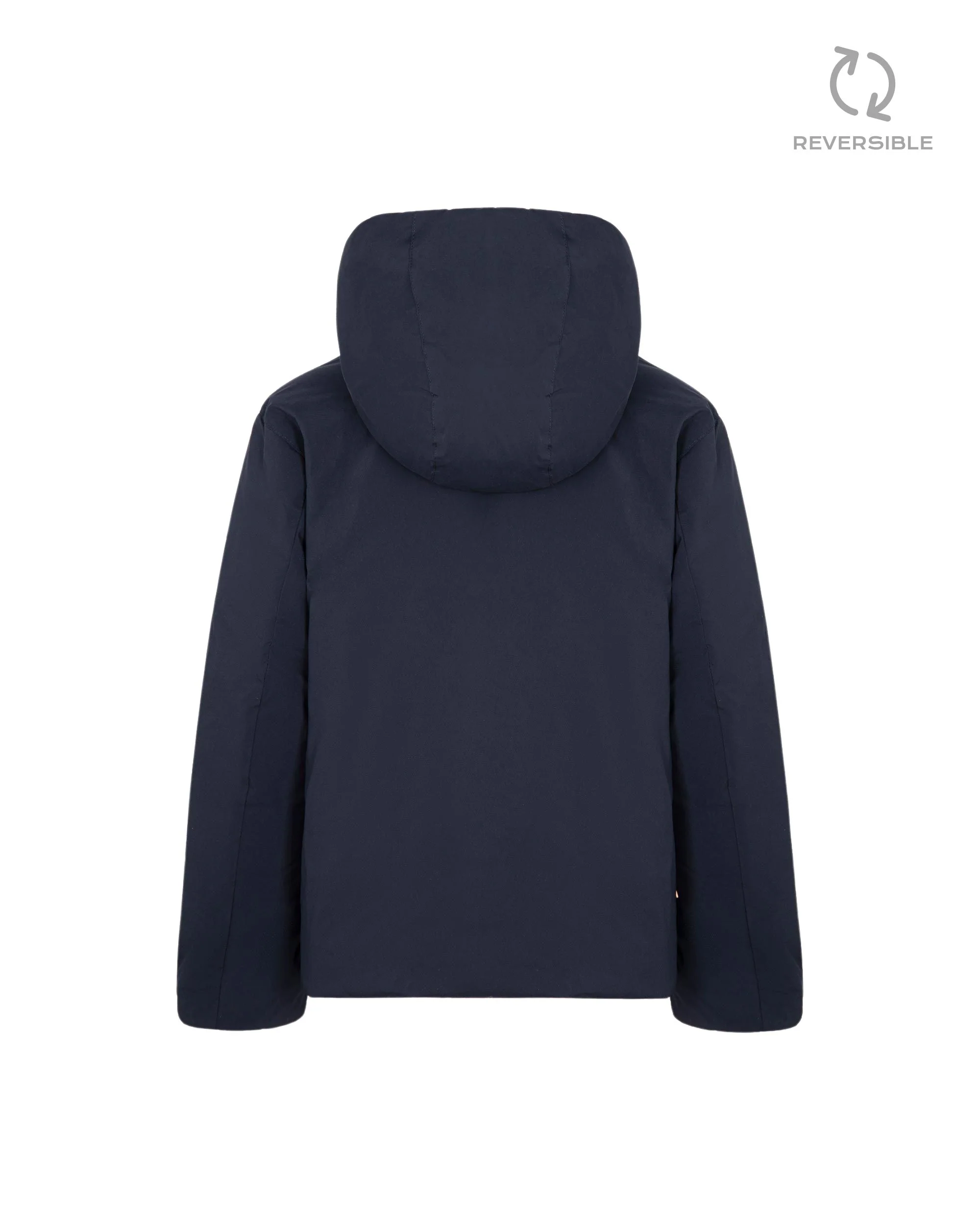 Il giubbotto reversibile da bambino unisce versatilità e protezione in un unico capo dal design dinamico. Da un lato presenta una superficie liscia effetto softshell, dall’altro un lato trapuntato effetto piumino, entrambi dotati di cappuccio fisso per una copertura completa. La zip frontale full-length consente una chiusura pratica e sicura, mentre le tasche laterali con zip offrono funzionalità quotidiana. Il logo reflective Suns è presente su entrambe le versioni del capo.