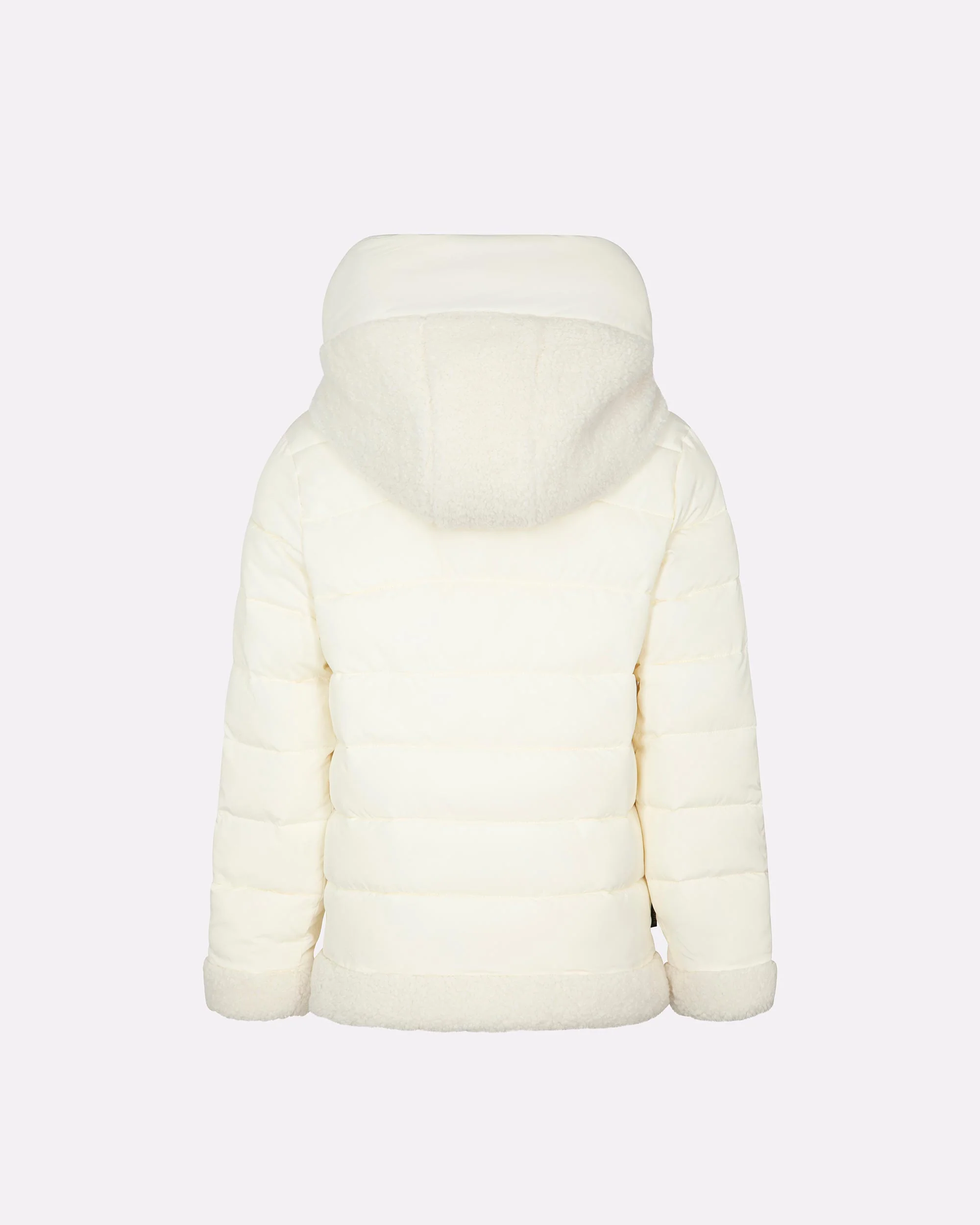 Il Jacket K Afrodite da bambina è un capo caldo e avvolgente, pensato per affrontare le giornate fredde con stile. Realizzato con imbottitura trapuntata, offre protezione e leggerezza, mentre il cappuccio integrato assicura comfort extra. I dettagli in eco fur sul bordo manica, sul fondo e sulle tasche conferiscono un tocco elegante e raffinato al design.