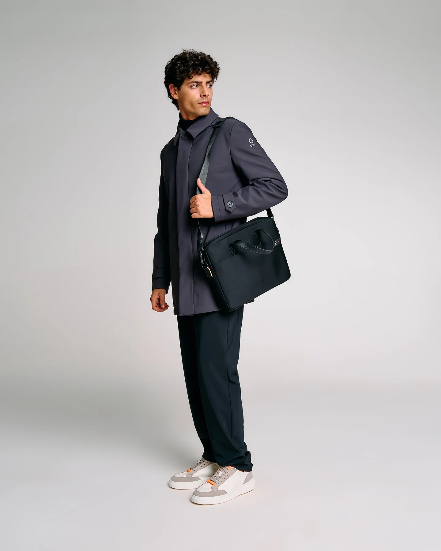 Il porta computer Suns è un accessorio essenziale per affrontare la quotidianità con ordine e stile. Il suo design pulito si adatta perfettamente a un utilizzo urbano, grazie alla praticità dei manici e della tracolla regolabile e removibile. Lo scomparto principale è spazioso e funzionale, pensato per trasportare laptop e oggetti personali in totale sicurezza. Una comoda tasca esterna con zip permette di accedere rapidamente agli accessori più usati. I dettagli fluo e il logo Suns aggiungono un tocco distintivo al look sobrio e professionale.