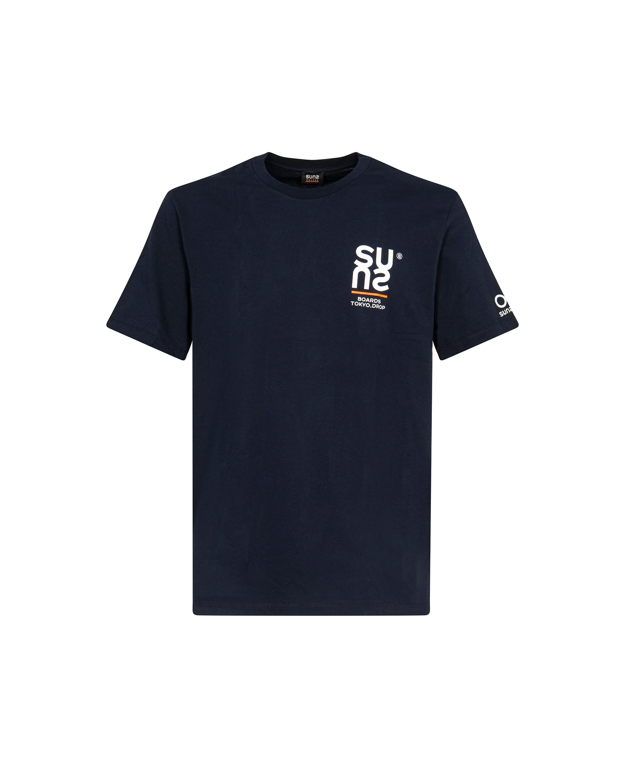 Il design è valorizzato dalla stampa anteriore e dalla stampa posteriore, che rafforzano l’identità Suns Boards con un impatto visivo deciso. Il girocollo rifinito con bordo elasticizzato garantisce una struttura pulita e una vestibilità stabile nel tempo.